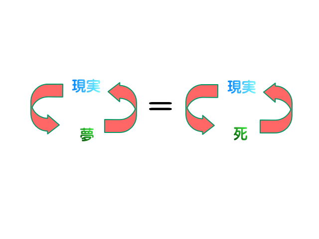 夢と現実を同程度の重みがあるものと捉えると、人間は現実と夢の世界を行ったり来たりしながら人生を送るわけです。