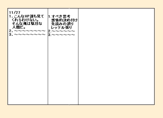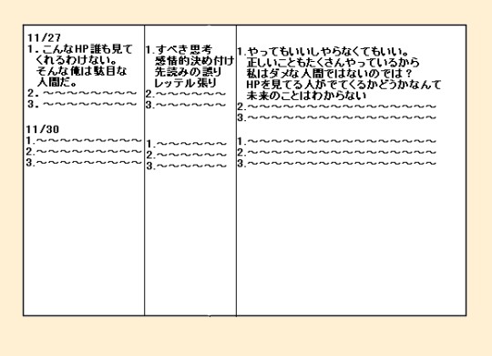 例)〜すべきだった、〜するんじゃなかった。こんなHP誰も見てくれるわけない。そんな俺は駄目な人間だ。